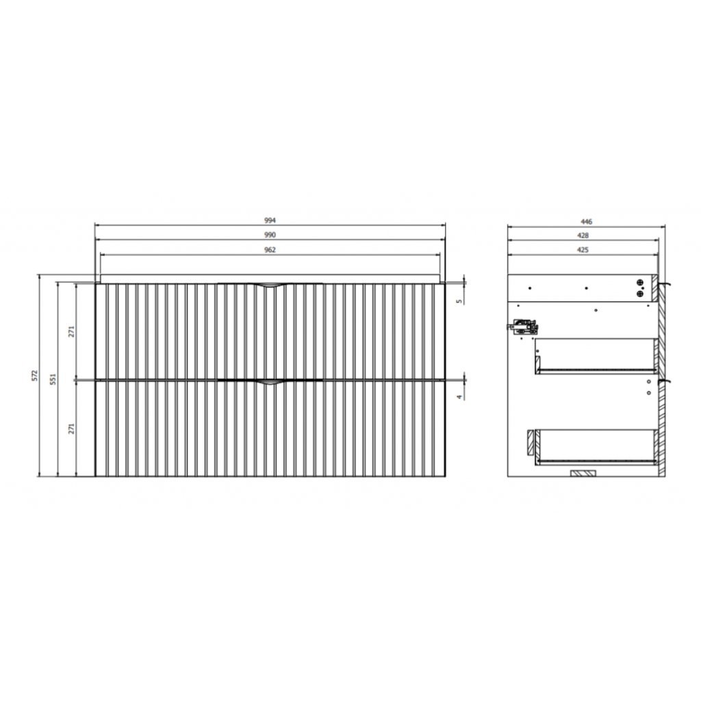Súčasťou dizajnovej skrinky je keramické umývadlom COMO. Skrinka je vyrobená s kvalitnej drevotrieskovej dosky o hrúbke 16 mm. Predné čelá šuplíkov sú frézované a doplniť skrinku môžete oceľovými úchytkami, ktoré sú dodávané vo farebnom prevedení chróm a čierna matná.