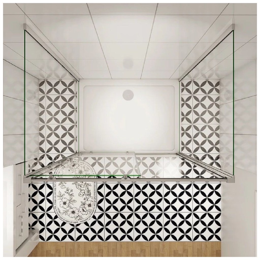 Sklo sprchovej zásteny je zhotovené z bezpečnostného transparentného skla s hrúbkou 6 mm, ktoré je vsadené do lešteného hliníkového rámu s povrchovou úpravou chrómu v lesklom prevedení a uzatváranie dverí je na magnetický spôsob.