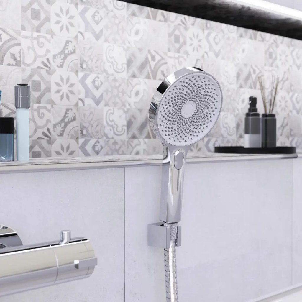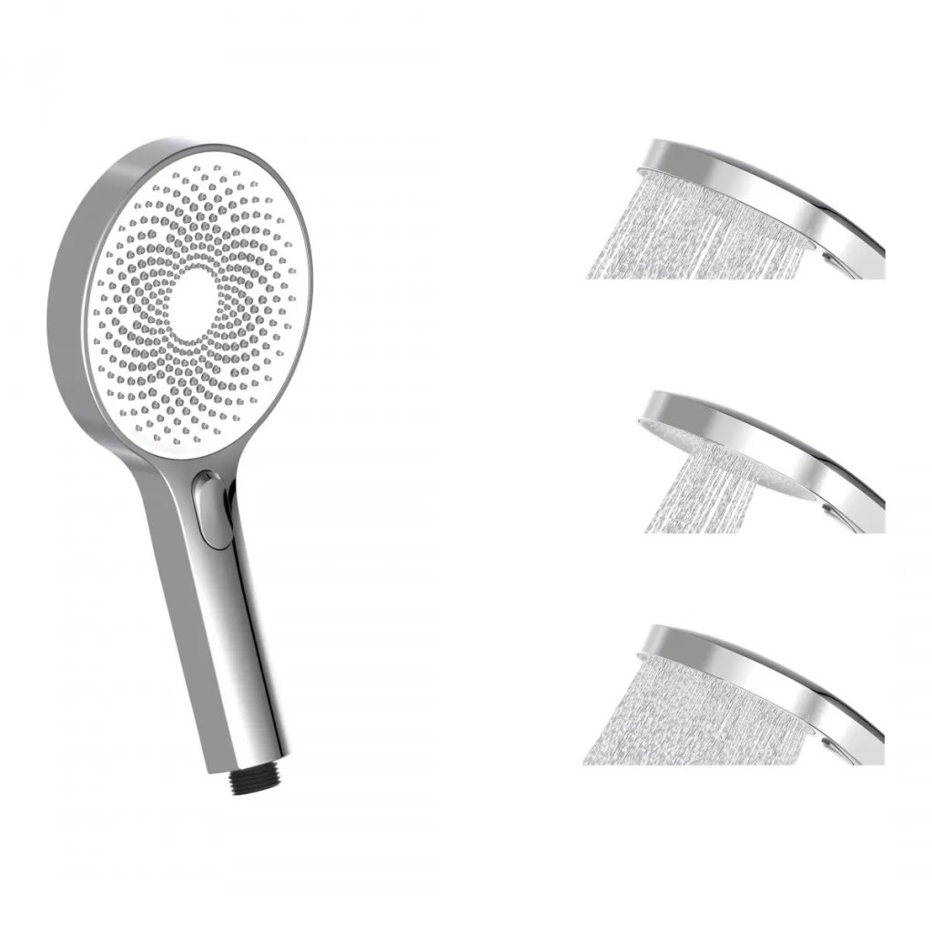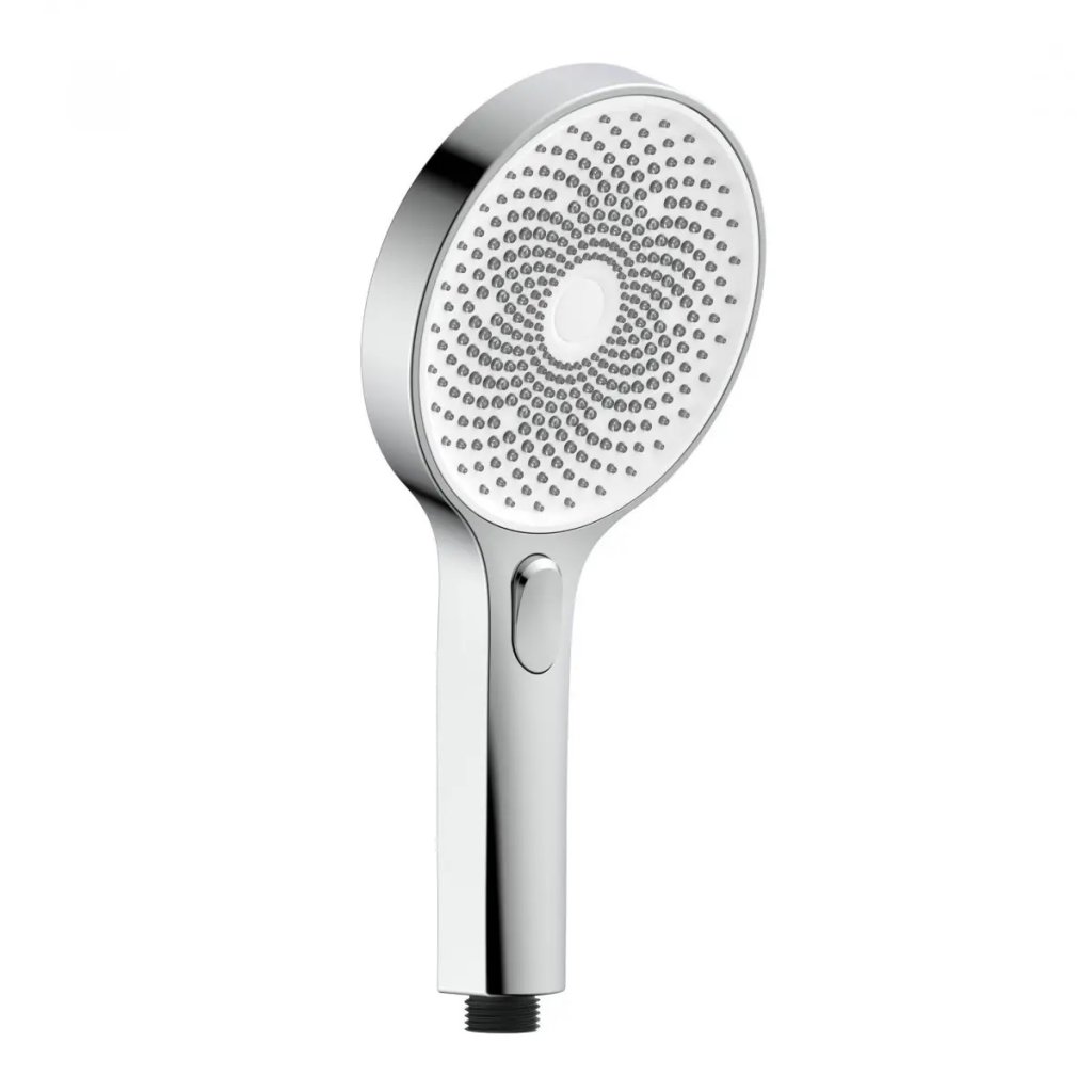 Elegantná wellnes ručná sprcha. Sprchová hlavica s integrovaným tlačidlovým prepínačom pre pohodlné nastavenie typu prúdu. Sprchová hlavica s gombíkmi proti vodnému kameňu pre ľahké odstránenie zvyškov vodného kameňa