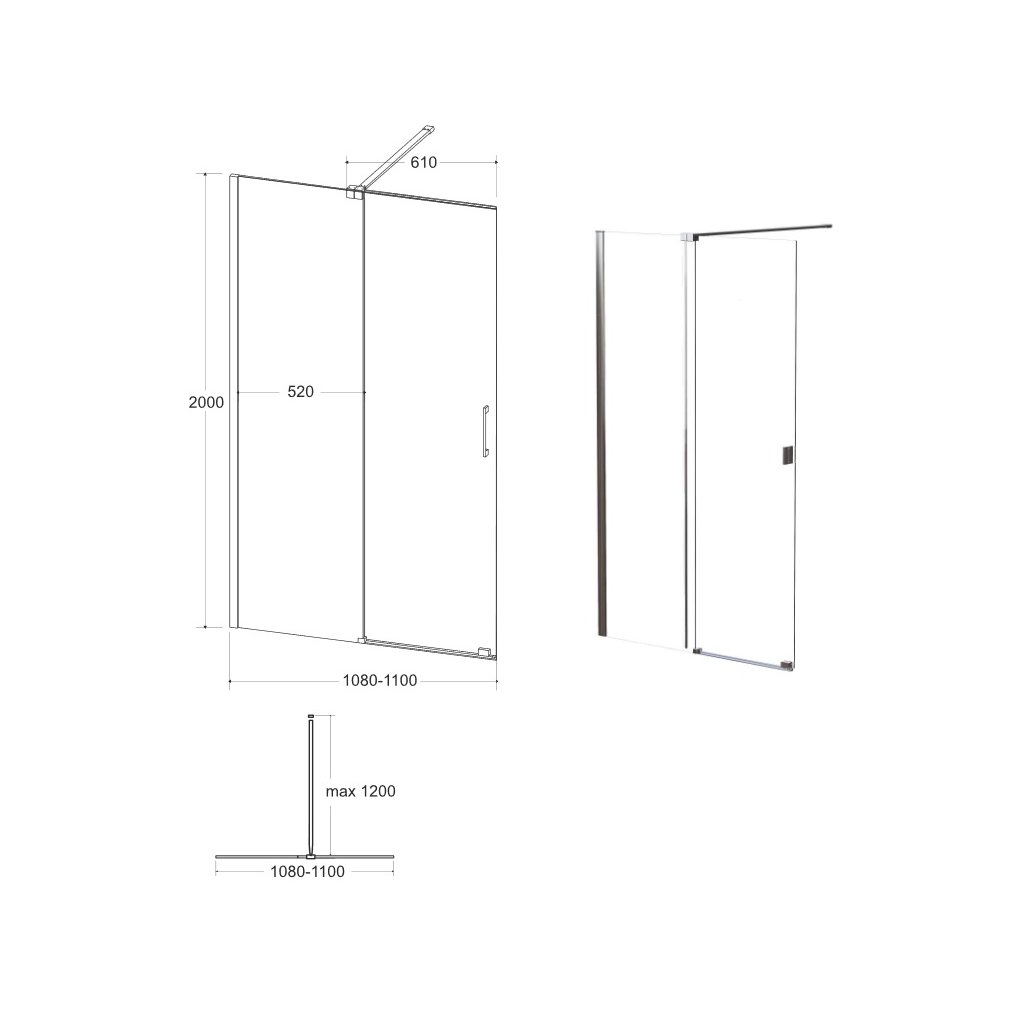 Sprchová zástena walk-in Besco VAYO chróm 110x200 cm (VY-110-200C)