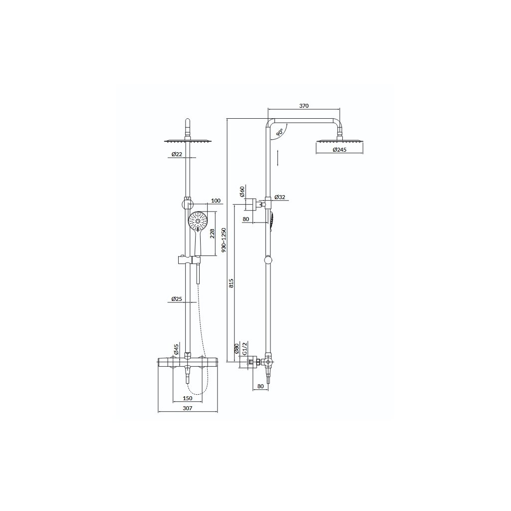 Súčasťou zostavy je vysoko výkonná termostatická sprchová batéria SafeTouch s chladeným telom, ktorá minimalizuje riziko popálenia a umožňuje presné nastavenie teploty vody. Prepínač umožňuje jednoduchú voľbu medzi dažďovou sprchou a ručnou sprchovou hlavicou, pričom ovládanie vody zabezpečuje kvalitný pozinkovaný gombík.