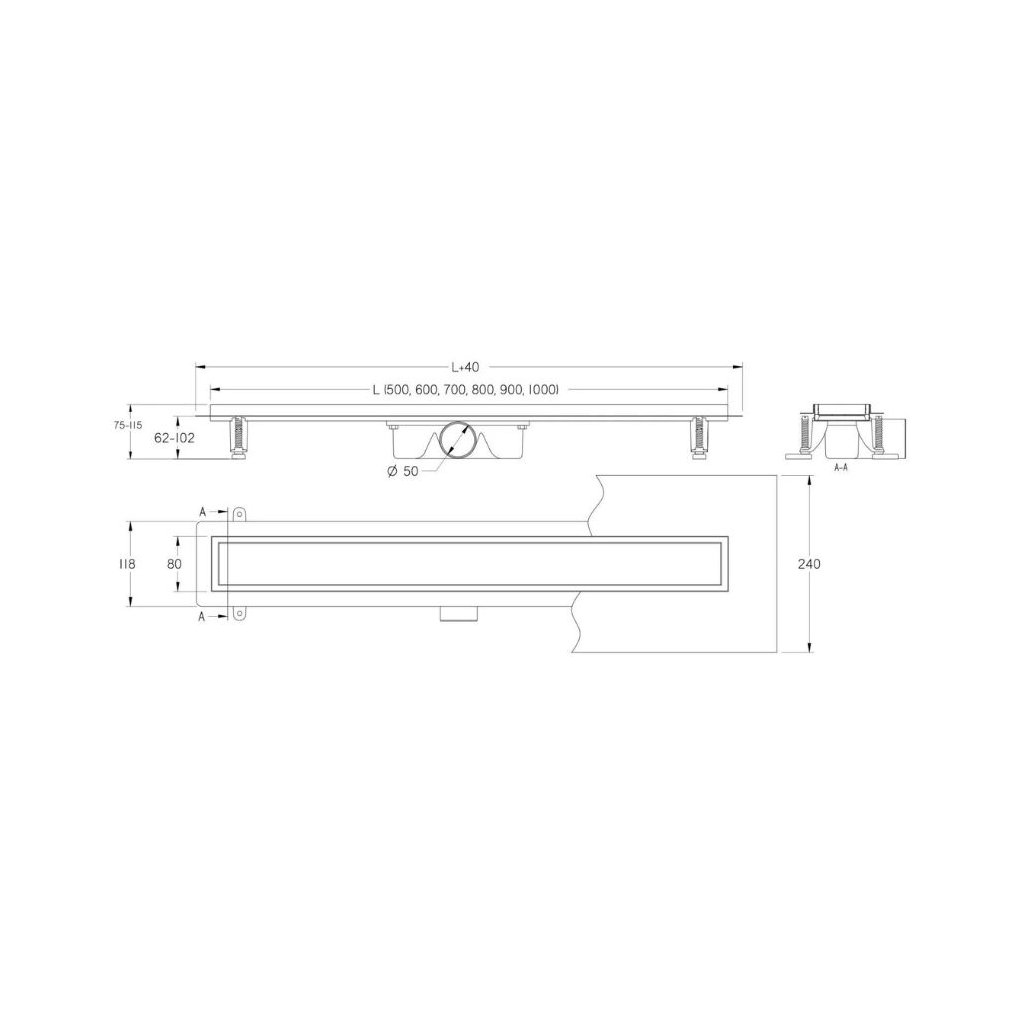 Montážne nožičky: súčasťou (vďaka nastaviteľnej výške žľabu je možné jednoducho namontovať odtok do podlahy ľubovoľnej výšky výtoku).