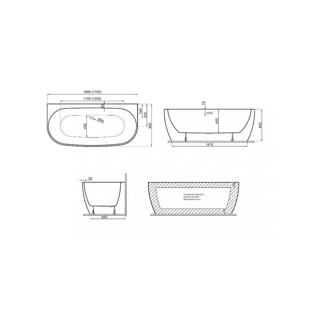 Voľne stojaca akrylátová vaňa Polimat RISA 160x80 biela (00477)